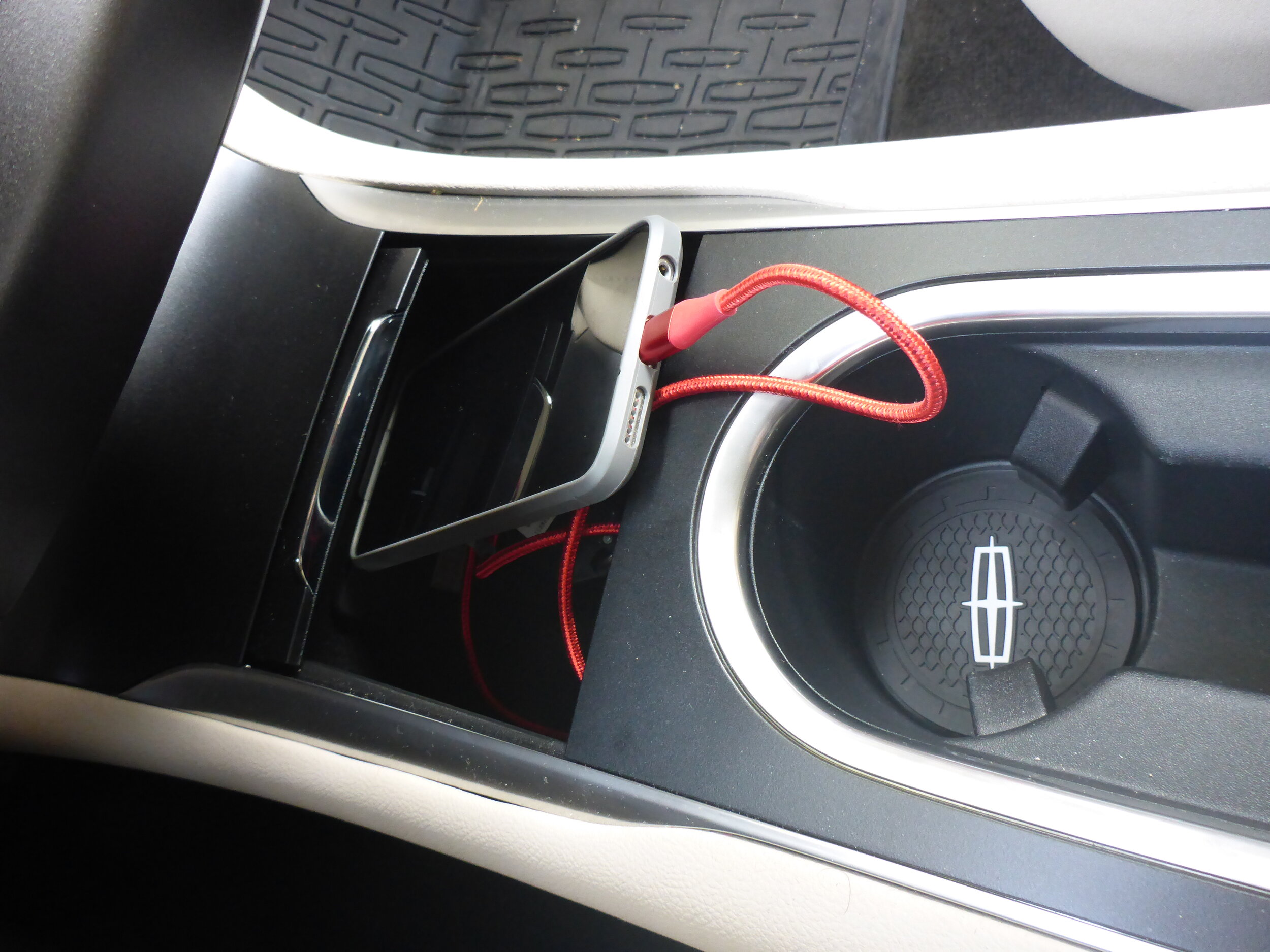 The buttons clean-up the space where a traditional shifter would live, but it doesn’t really add interior storage space. It just looks super clean. The cup holders are in a prominent central location and there’s a storage compartment ahead of them. That compartment was too small for most phones when the MKC was released in 2014. And now, virtually no phones can fit neatly in that compartment. So when you have a phone tethered for use with Apple CarPlay or Android Auto, that phone will rest partially inside the compartiment (oh, but the new Motorola RAZR will, have you seen that marvel?). Pity there isn’t an alternative tethering location, like the mustang does inside the center storage console. Speaking of which, the center storage console in the MKC is very deep. Well over a foot. You can hide a lot of things in there. It’s not wide enough for a laptop or tablet (a feature that Acura pushes with its MDX), but it is the biggest gadget storage location in the vehicle, and has a charge-only USB port if you don’t need to use Apple CarPlay or Android Auto.
