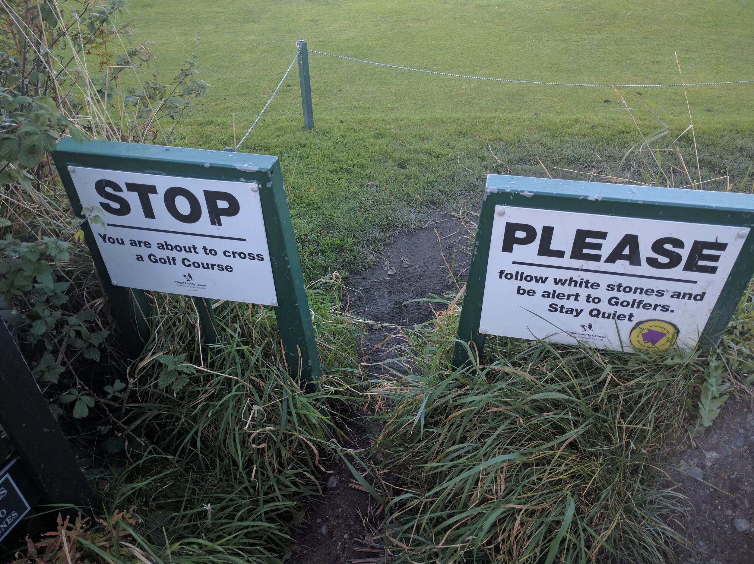 The short loop (marked by green arrows) is the most popular but if you have the time and energy, push to do the longer hike, marked by purple arrows. You can detour to the Baily Lighthouse gate but the view is quite obstructed. It's reportedly open once a year for visitors and that seems worth checking out. On this path you'll get views of the lighthouse from the other side, likely with the sun in your favor. Other benefits of the purple path are many fewer hikers, plant life, peeks at more cliff-front homes, access to a few beaches, views of Dublin harbor, and access to another Martello tower. On this path you'll also walk through an active golf course (fore!) and encounter some locals walking their dogs, a sign you're returning to civilization.