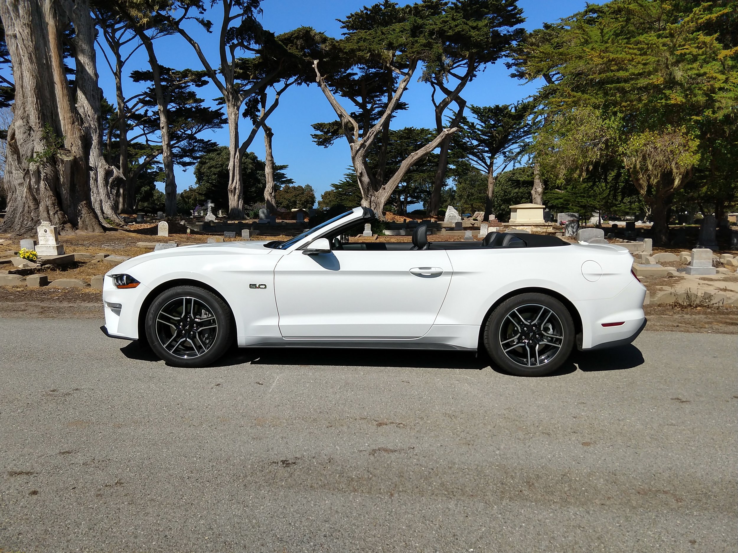 But Sixt didn’t have a BMW convertible. They didn’t have a Mercedes C Class convertible either. The manager nodded at me and said “I’ll let you take a 5.0, no extra charge.” I got scared. I knew what he just said. I was getting a Mustang GT convertible for three days. So much torque. So much noise. So many ways to wreck a car in three days. I got nervous. But I let him punch in the codes. I signed the contract. And then there it was. A just-washed 2018 Mustang GT with just 636 miles on the clock. Within 30 minutes, I was in the parking lot of 4th Street Bowl, a midcentury style bowling alley with a “W” shaped canopy above the entrance. There were some sketchy men and women hanging out front, but I wanted to get settled with this beast. I put loose items away, put the top down, got my coordinates for Santa Cruz, and hit Route 17 south. It was a fitting introduction to this car. With the top down, I could hear every exhaust note, and the highway is an old 2-lane with lots of curves and elevation changes. It’s a little like the Merritt Parkway in Connecticut, only with many more hills.