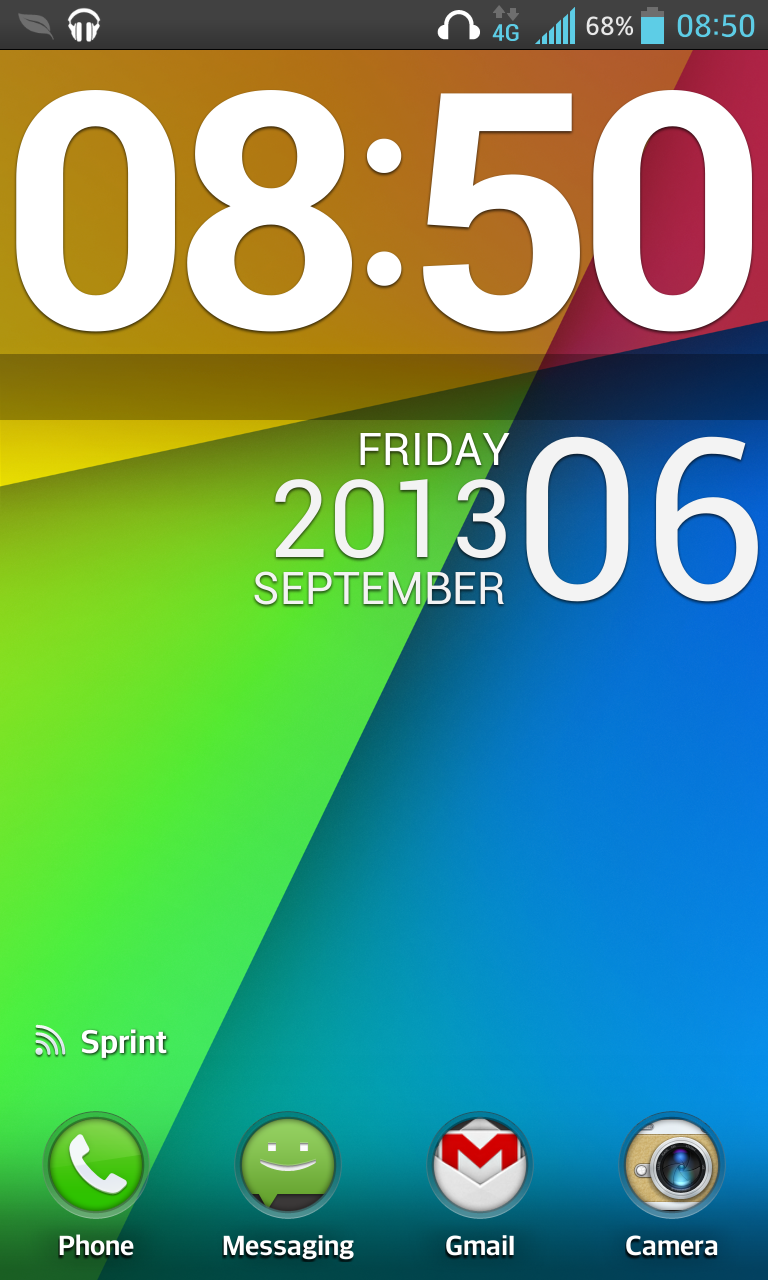 But LG still made changes in the second year of ther "G" user interface. The lock screen of the G1 phone is customizable. You can choose a wallpaper, a big clock or calendar overlay, and four apps you can quickly launch by swiping over them. Here are two versions of the G1 lock screen.