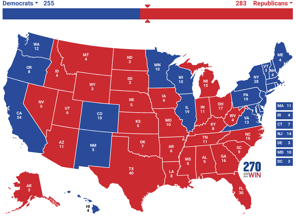 These drops in support are going to cost Biden key swing states. Take Georgia, for example. Voter suppression and lack of enthusiasm for Biden has swung Georgia firmly back into Trump’s column. In Arizona, Democrats outnumber Republicans, and yet Democratic Senate candidate Reuben Gallego is leading in the polls while Trump is leading Biden in Arizona. Michigan is slipping away. Incredibly, so is Nevada, again, where Democrats outnumber Republicans. My current (and very pessimistic) electoral map looks like this: